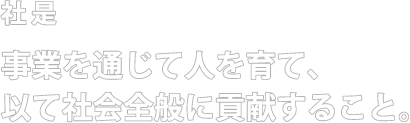 社是 事業を通じて人を育て、 以て社会全般に貢献すること。 Service #1 一般不動産コンサルティング Service #2 リゾートマンション・ホテル開発 Service #3 建築設計・物流コンサルティング Service #4 不動産事業者様の育成・指導 Service #5 省エネ環境開発 購買事業 Service #1 一般不動産コンサルティング Service #2 リゾートマンション・ホテル開発 Service #3 建築設計・物流コンサルティング Service #4 不動産事業者様の育成・指導 Service #5 省エネ環境開発 購買事業